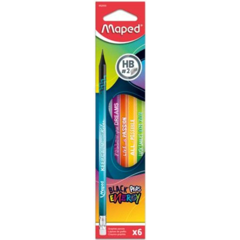 1 kép MAPED Grafitceruza radírral, HB, háromszögletű, MAPED "Black`Peps Energy", 6 különböző minta