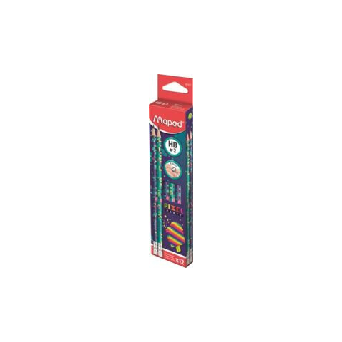 A Maped Pixel Party kollekciójával egy retro-futurisztikus környezetbe csöppenhetünk, mely fiúknak és lányoknak egyaránt vonzó világot jelent. -famentes grafitceruza -ergonomikus, háromszög forma a kényelmes fogásért -40,9%-ban újrahasznosított anyagból készül -HB keménység -radírvéggel a hibák gyors javításáért -könnyen hegyezhető -kétféle minta a készletben   Gyártó/első EU forgalmazó elérhetősége: MAPED SAS 530 route de Pringy - 74370 Argonay