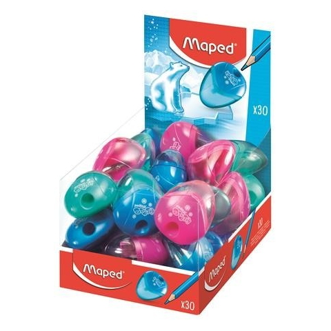 1 kép MAPED Hegyező display, egylyukú, tartályos, MAPED "I-Gloo", vegyes színek, 30db/disp