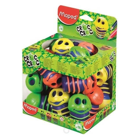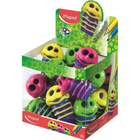2 kép MAPED Hegyező display, kétlyukú, tartályos, MAPED Croc Croc, kukac, vegyes színek (IMA501700)