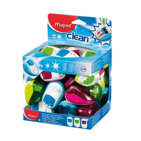 1 kép MAPED Hegyező display, kétlyukú, tartályos, MAPED "Clean", vegyes színek