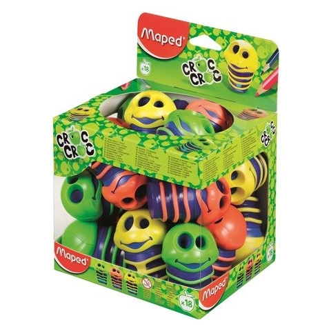 1 kép MAPED Hegyező display, kétlyukú, tartályos, MAPED "Croc Croc", kukac, vegyes színek
