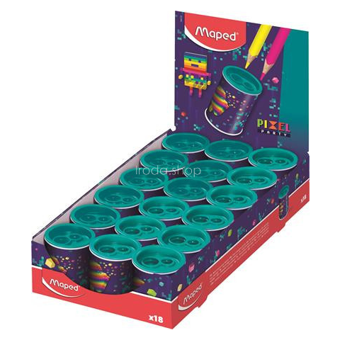 Hegyező display, kétlyukú, tartályos, MAPED Pixel Party A Maped Pixel Party kollekciójával egy retro-futurisztikus környezetbe csöppenhetünk, mely fiúknak és lányoknak egyaránt vonzó világot jelent. -kétlyukú hegyező normál és vastag ceruzákhoz egya