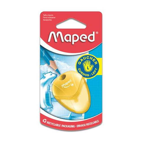 Hegyező, egylyukú, tartályos, balkezes, MAPED I-Gloo, vegyes színek - műanyag test - balkezeseknek - fém pengével - vegyes színekben, a szín nem választható - modern forma - könnyen üríthető tartállyal Gyártó/első EU forgalmazó elérhető