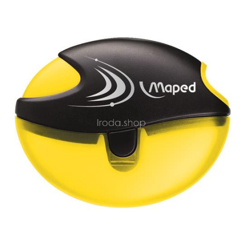 Hegyező, egylyukú, tartályos, MAPED Galactic - műanyag test - hegykilökő funkciója segítségével gyorsan és könnyedén eltávolíthatjuk a hegyezőbe beletört ceruzahegyet - modern forma - könnyen üríthető tartállyal - a lyukat takaró lemez a hegyezés u