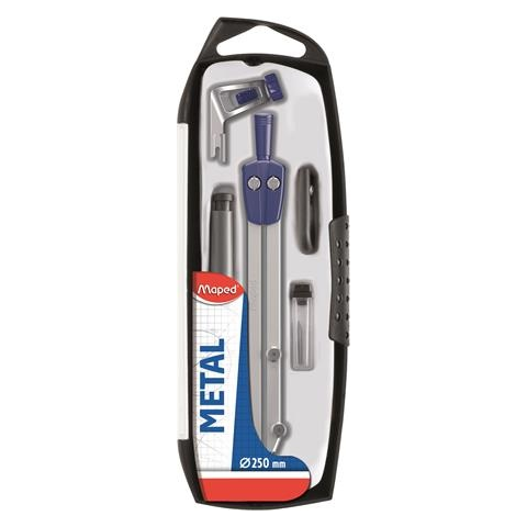 fém lábakkal 2 mm-es grafitheggyel ergonomikus fej egyszerű használat az 5 darabos készlet tartalma: körző, hegyező, póthegyek, univerzális láb, 0,5 mm nyomósirón Gyártó/első EU forgalmazó elérhetősége: MAPED SAS 530 route de Pringy - 74370 Argonay sophie.souillard@maped.fr www.maped.com
