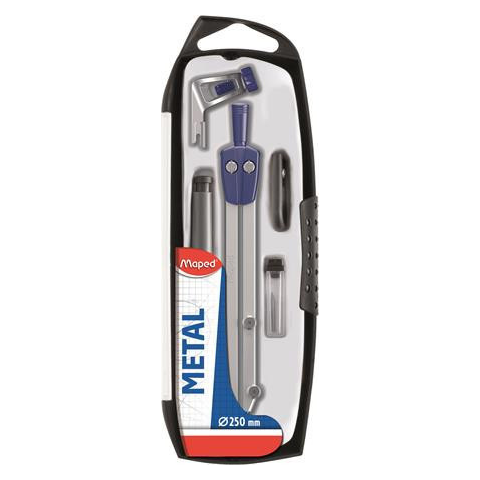 Körző készlet, 5 darabos, MAPED Focus/Start fém lábakkal 2 mm-es grafitheggyel ergonomikus fej egyszerű használat az 5 darabos készlet tartalma: körző, hegyező, póthegyek, univerzális láb, 0,5 mm nyomósirón Gyártó/első EU forgalmazó elérhetősége: MAP