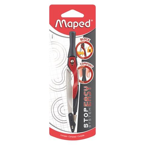 Körző, rögzíthető lábakkal, MAPED Stop System Innovation fém lábakkal 2 mm-es grafitheggyel egyszerűen és biztosan rögzíthető lábtávolság tű- és grafithegytakaró szerkezet védi a gyermekeket és a hegyet a sérülésektől vegyes színekben, a szín nem válas
