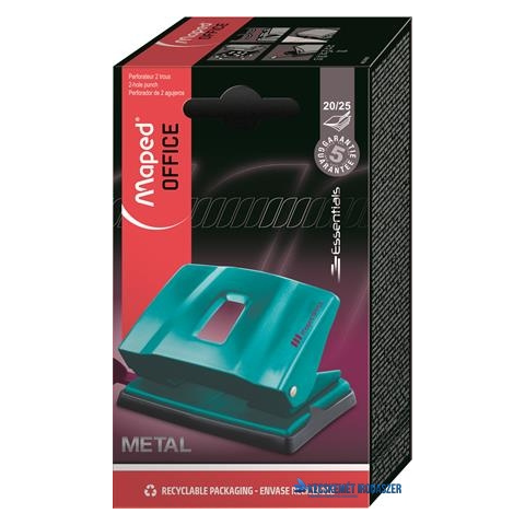 1 kép MAPED Lyukasztó, kétlyukú, 25 lap, fém, MAPED "Essentials 25", türkiz