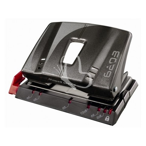 fémtest, fényes bevonat kidolgozottság és letisztult dizájn kombinációja távtartó bemélyedés a konfettitartó tálcán a gyűrűskönyvek és emelőkaros iratrendezők fémszerkezetének odaillesztéséhez, a dokumentumok pontos helyen történő lyukasztásához lyukátmér