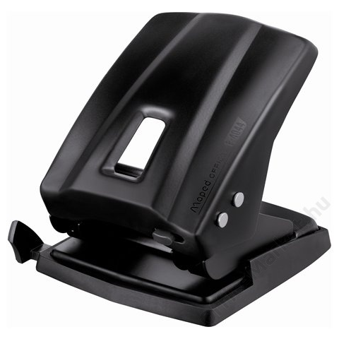 Lyukasztó, kétlyukú, 45 lap, fém, MAPED Essentials 45, fekete (IMA404411) fém test, fekete matt bevonat letisztult dizájn és célszerűség kombinációja távtartó bemélyedés a konfettitartó tálcán a gyűrűskönyvek és emelőkaros iratrendezők fémszerkezetének