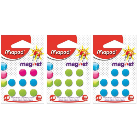Mágnes, kerek, 10 mm, MAPED, vegyes színek - fehértáblákhoz jól használható - kék, zöld és vegyes színekben - a szín nem választható - bliszteres csomagolás - átmérő: 10 mm Gyártó/első EU forgalmazó elérhetősége: MAPED SAS 530 route de Pringy - 7