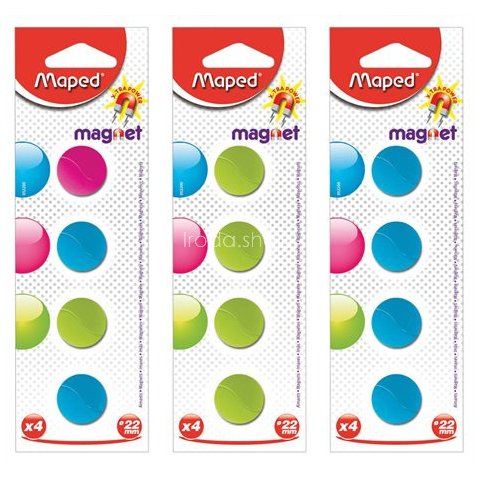 Mágnes, kerek, 22 mm, MAPED, vegyes színek - fehértáblákhoz jól használható - kék, zöld és vegyes színekben - a szín nem választható - bliszteres csomagolás - átmérő: 22 mm Gyártó/első EU forgalmazó elérhetősége: MAPED SAS 530 route de Pringy - 7