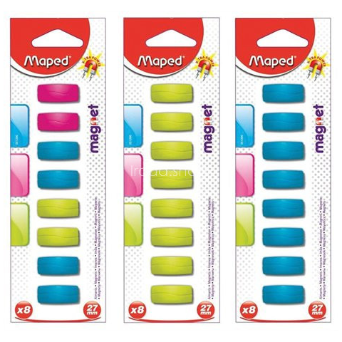 Mágnes, téglalap alakú, 27 mm, MAPED, vegyes színek - mágnestáblákhoz jól használható - kék, zöld és vegyes színekben - a szín nem választható - bliszteres csomagolás - méret: 27x10 mm Gyártó/első EU forgalmazó elérhetősége: MAPED SAS 530 route d