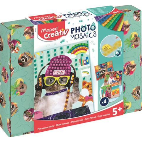 Mozaikos képkészítő készlet, MAPED CREATIV, Cool Animals, menő állatok Mi lehet izgalmasabb és szórakoztatóbb, mint stílusos portrét készíteni állatokról? A készlet tartalma: -4 db színes, állatos kartonlap -8 ív EVA hab mozaik matrica (7x7 cm) - min