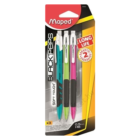 Nyomósirón, 0,5 mm, MAPED Long Life, vegyes színek (IMA564053) műanyag tolltest és kiegészítők gumírozott fogórész 50 %-kal több grafitbél fér bele más nyomósironokhoz képest vonalvastagság: 0,5 mm Gyártó/első EU forgalmazó elérhetősége: MAPED SAS 53
