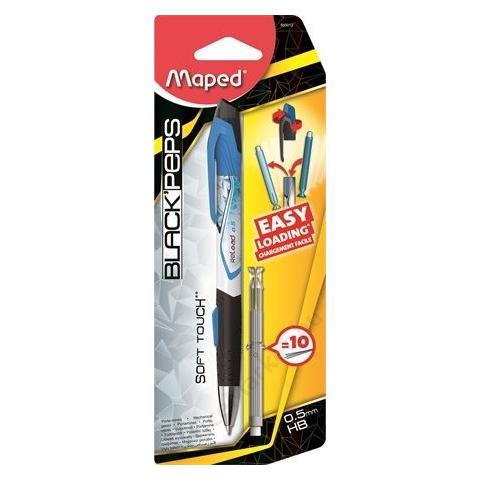 Nyomósirón utántöltővel, 0,5 mm, HB, MAPED Reload, vegyes színek (IMA560012) műanyag tolltest és kiegészítők gumírozott fogórész egyszerű utántöltés: nyomja meg az oldalán található gombot, és helyezzen új utántöltő patront a nyomósirónba egy parton 10