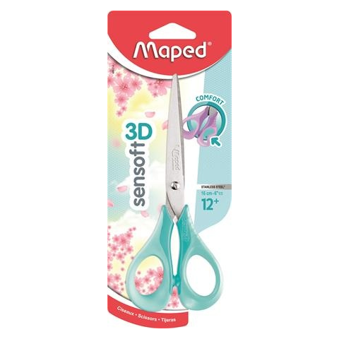 1 kép    MAPED Olló, általános, 16 cm, rugalmas nyél, MAPED "Sensoft 3D", vegyes pasztell színek