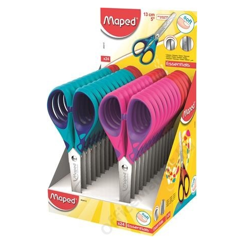 Olló display, iskolai, 13 cm, MAPED Essentials Soft (IMA464412) rozsdamentes acélpengével és szegeccsel lekerekített végekkel a biztonságos használatért puha borítású markolata kényelmes fogást tesz lehetővé Gyártó/első EU forgalmazó elérhetősége: MA