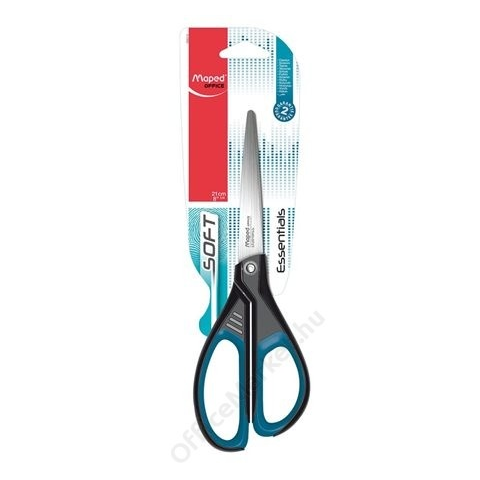 Olló, irodai, 21 cm, MAPED Essentials Soft (IMA468310) rozsdamentes acélpengével és szegeccsel puha borítású markolata kényelmes fogást tesz lehetővé környezetbarát csomagolás 5 év garancia Gyártó/első EU forgalmazó elérhetősége: MAPED SAS 530 route