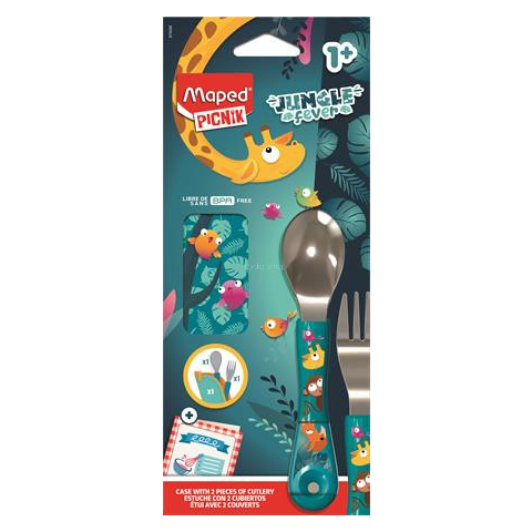 Evőeszközkészlet, fém, szövet tok, MAPED PICNIK Jungle Fever Itt a MAPED PICNIK új dzsungel ihlette kollekciója, melyet kifejezetten a legkisebbek számára terveztek! Vidám állatos mintázata magával ragadja a gyermekek fantáziáját! Evőeszközkészlet te