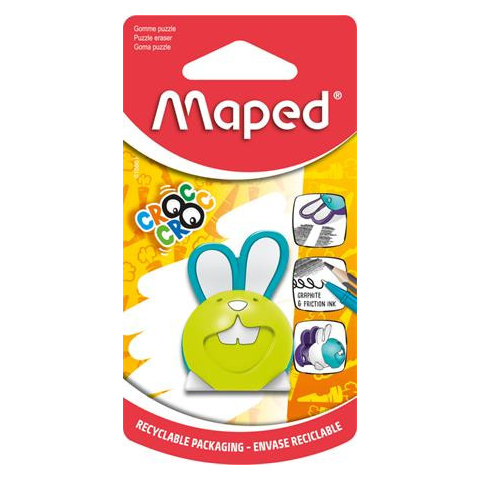 Puzzle radír, MAPED Croc Croc Puzzle, nyuszi, vegyes színek - vidám, szórakoztató egyedi dizájn gyerekkézre tervezett - kényelmes fogású forma - grafitot és radírozható tintát is képes radírozni - magas hatékonyság - műanyag borítás a koszolódás ellen