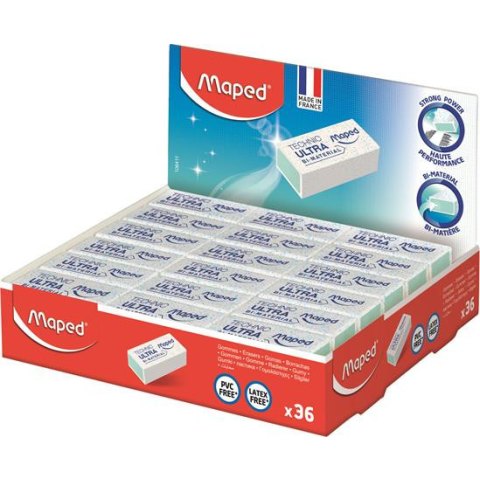 Radír display, MAPED Mini Technic Ultra - extra hatékonyságú, prémium minőségű radír - otthoni, irodai, iskolai használatra - nem morzsolódik - PVC- és ftalátmentes Gyártó/első EU forgalmazó elérhetősége: MAPED SAS 530 route de Pringy - 74370 Argona