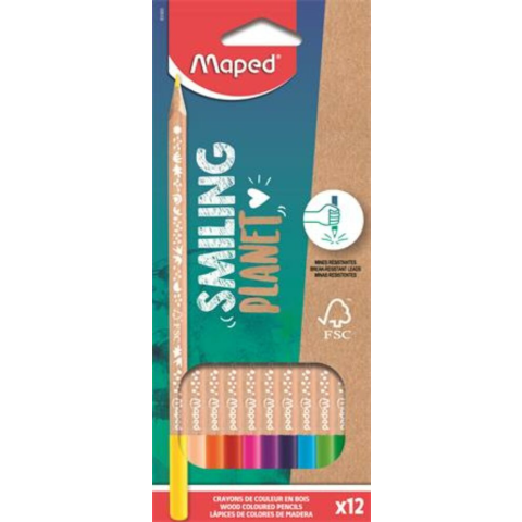 A Színes ceruza készlet, háromszögletű, FSC, MAPED Smiling Planet, 12 különböző szín (IMA831800) Teremtsünk együtt egy jobb világot! SMILING PLANET: egy új termékcsalád, amely elkötelezett a bolygó iránt egy új, FSC fakitermelésből és újrahasznosított a