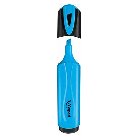 Szövegkiemelő, 1-5 mm, MAPED Fluo Peps Classic, kék - vágott hegy - élénk színek - normál, fénymásoló- és faxpapírhoz is ajánlott - nem szárad be 4 óra után sem kupak nélkül - a tinta színével megegyező műanyag tolltest - klippel ellátott kupak - vonal