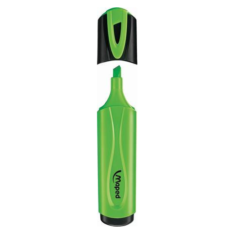 Szövegkiemelő, 1-5 mm, MAPED Fluo Peps Classic, zöld - vágott hegy - élénk színek - normál, fénymásoló- és faxpapírhoz is ajánlott - nem szárad be 4 óra után sem kupak nélkül - a tinta színével megegyező műanyag tolltest - klippel ellátott kupak - vona
