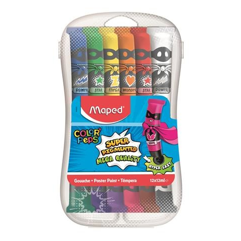 1 kép MAPED Tempera készlet, 12 darabos, műanyag dobozban, MAPED