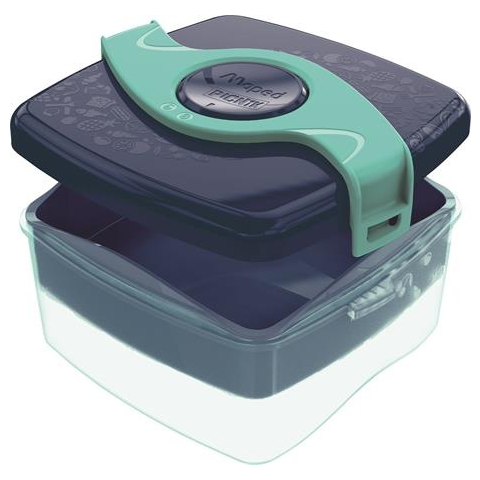MAPED Picnik "Origins" minden alkalomra, hogy az étkezés mindig élvezetes legyen! kétszintes uzsonnás doboz a teljes ebéd tárolására kivehető felső tálca lekerekített sarkok szivárgásmentes, levehető tető a biztonsági rögzítő elforgatásával könnyen nyitható BPA mentes mosogatógépben mosható mikrohullámú sütőben tető nélkül használható űrtartalom: 1 l doboz mérete: 14×14 cm magassága: 6,5 cm / tetővel 8 cm belső rekesz mérete: 13,5×13,5 cm