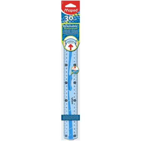 Vonalzó, műanyag, hajlítható, 30 cm, leszorítóval, MAPED Flex (IMA244130) - 100%-osan törésálló - könnyen olvasható, kétoldalas számskála - enyhén hajlítható - a gumírozott hullám segíti a biztos fogást - leszorítóval - vegyes színekben, a szín n