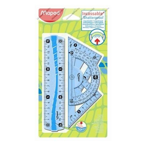 Termékjellemzők: - Mini vonalzókészlet. - Anyaga: műanyag. - 100%-osan törésmentes. - Könnyen olvasható számskála. - A mini szett tartalma: 1 db 15 cm-es vonalzó 1 db 60°-os, 12 cm-es háromszögvonalzó 1 db 45°-os, 12 cm-es háromszögvonalzó 1 db 180°-os,