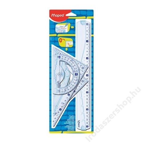 Vonalzókészlet, műanyag, 4 darabos, MAPED Geometric (IMA242767) - műanyag - könnyen olvasható számskála - a 30 cm-es vonalzón sablon található hullámvonal rajzolásához a szett tartalma: - 1 db 30 cm-es vonalzó - 1 db 60°-os, 20 cm-es méretbosztású