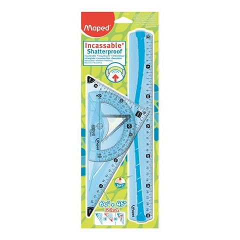 Vonalzókészlet, műanyag, hajlítható, 3 darabos, MAPED Flex - műanyag - 100%-osan törésmentes - könnyen olvasható számskála a nagy szett tartalma: - 1 db 30 cm-es vonalzó - 1 db 180°-os, 12 cm-es szögmérő - 1 db 2 in 1 vonalzó: 60° es 45°-os szögmé
