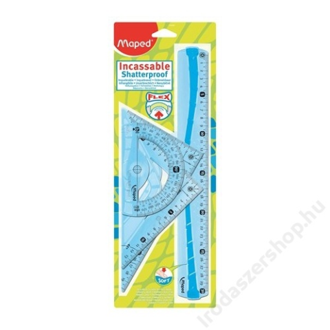 Vonalzókészlet, műanyag, hajlítható, 4 darabos, MAPED Flex (IMA244304) - műanyag - 100%-osan törésmentes - könnyen olvasható számskála a nagy szett tartalma: - 1 db 30 cm-es vonalzó - 1 db 60°-os, 21 cm-es háromszögvonalzó - 1 db 45°-os, 21 cm-es