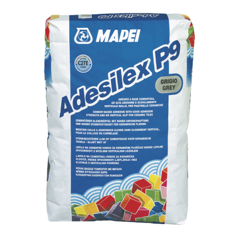 Adesilex P9 csemperagasztó - 5 kg - szürke - cementkötésű ragasztóhabarcs - kerámia burkolólap és kerámiamozaik ragasztására -- bel- és kültéri padlón és falon -- hagyományos cementkötésű vakolt falakra -- cementkötésű esztrichekre -- (megfelelő alapozás után) anhidrid esztrichekre és gipsztartalmú falakra -- beltéri falakon szilárd festékrétegre -- meglévő műkő és márvány burkolatú padlókra (legfeljebb 900 cm2 lapméretig) -- feszültségmentes betonsze