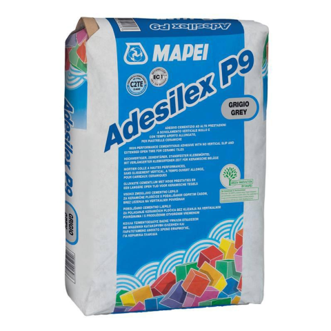 Adesilex P9 csemperagasztó, 25 kg. Szürke színben. Cementkötésű ragasztóhabarcs, kerámia burkolólap és kerámiamozaik ragasztására, bel- és kültéri padlón és falon. Hagyományos cementkötésű vakolt falakra, cementkötésű esztrichekre, (megfelelő alapozás után) anhidrid esztrichekre és gipsztartalmú falakra, beltéri falakon szilárd festékrétegre, meglévő műkő és márvány burkolatú padlókra (legfeljebb 900 cm2 lapméretig), feszültségmentes betonszerkezetek
