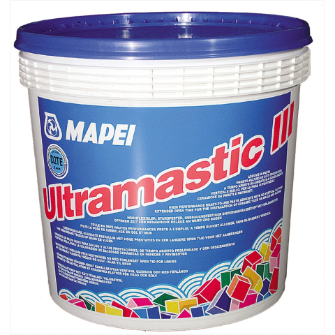 Az Ultramastic III D2TE osztály szerinti fokozott teljesítményű (2), lecsúszásmentes (T), nyújtott nyitott idejű (E), diszperziós (D) ragasztó. Alkalmazási terület: - Mindenfajta kerámia burkolólap és mozaik ragasztása beltérben falra, padlóra és mennyezetre. - Mindenfajta kerámia burkolólap és mozaik ragasztása kültéri falra. - Hő- és hangszigetelő anyagok, mennyezeti dekorációs panelek, pórusbeton blokkok ragasztása az építésben általában használatos minde