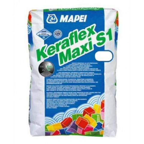 KERAFLEX MAXI S1 ZERØ MAXI teljesítmény, ZERO hatás. Az egyetlen fokozott terhelhetőségű, cementkötésű ragasztó a Mapei Kutató laboratóriumából, mely zéró hatással van a környezetre. Fokozott terhelhetőségű, cementkötésű, szürke ragasztó csökkentett megcsúszással, Low Dust technológiával, nyújtott nyitott idővel, alakváltozásra képességgel és kitűnő bedolgozhatósággal. Alkalmas nagy formátumú kerámia burkolólapok és kő anyagok fektetéséhez nagy