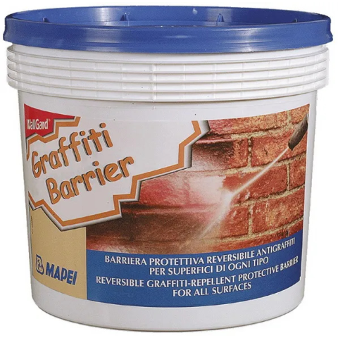 Mapei WallGard Graffiti BARRIER - impregnáló bevonó anyag márvány, gránit és általában természetes kő burkolatú homlokzatok védelmére ajánlott a szokásos festék spray-kel, zsírkrétával, filctollal készített firkák ellen. A WallGard Graffiti Barrier cemen