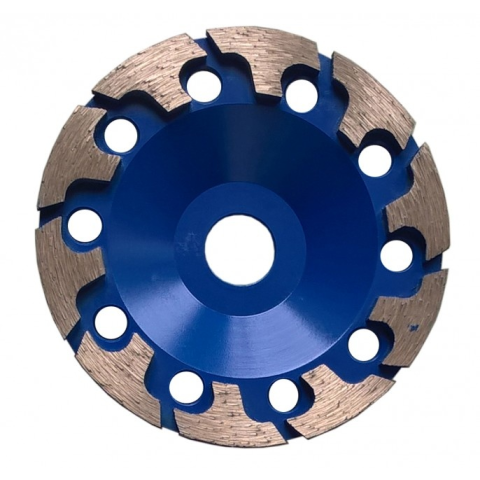 Gyémánt csiszolókorong 125mm T-Shape T- Shape gyémánt csiszolókorong beton csiszolásához 125 mm-es átmérővel, 5 mm-es csiszolófelület-vastagsággal.Technikai paraméterek: Korong átmérője: 125 mmCsiszolófelület vastagsága: 5 mm