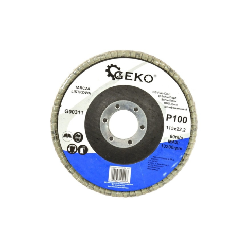 Lamellás csiszolókorong 115mm P100Lamellás csiszolókorong sarokcsiszolóhoz, különféle anyagok, pl. fa, fém, műanyag megmunkálására, bevonatok, rozsda, stb. eltávolítására használatos. A lamellás korong átmérője 115 mm, furat-átmérő 22,2 mm, szemcseméret P100.Technikai paraméterek:Korong átmérője: 115 mmFurat-átmérő: 22,2 mmSzemcseméret: P100