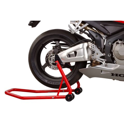Motorkerékpár alátámasztó állvány 680 kgMotorkerékpár alátámasztó állvány 680 kg-os teherbírással ás 360 mm-es szélességgel. Ideális alapszerviz-tevékenységekhez, mint pl. olajozás, lánc fesztése és -karbantartása, olajcsere, gumiszerviz, tisztítás és hátsó abroncs, motorkerékpár áttelelés. A gumis rögzítések védik a mérlegkart a karcolásokkal szemben. Technikai paraméterek:Teherbírás: 680 kgÁllvány szélessége: 360 mmMéretek: 730 x 400 mmSúly: