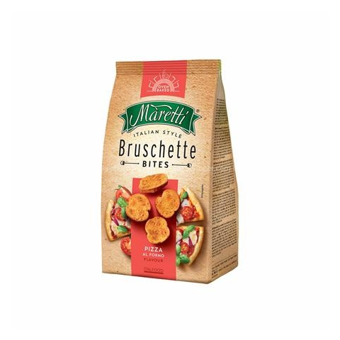 Pirított kenyérkarika, 70 g, MARETTI "Bruschette", pizza ízesítéssel - KHK594 - Sós ropogtatnivalók - A klasszikus olasz pizza hozzávalói a kétszersült kenyészeleteken, egy hagyományos, de mégis egyedi ízélményért.