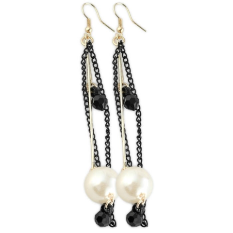 Maria King Gyöngyös-köves láncos nagyméretű fülbevaló, fekete-arany