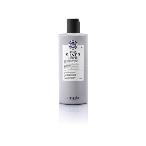 Sampon nők számára - hagyományos sampon, festett, öregedő és őszülő hajra ajánlott, fényesítő és hidratáló hatás, ezüst sampon , parabénmentes, szilikonmentes és szulfátmentes, 350 ml-es kiszerelésben, professzionális kozmetikum, környezetbarát kozmetikum, természetes sampon A MARIA NILA Sheer Silver egy egyedülálló, semlegesítő hatású hajsampon a svéd természetes kozmetikumok szakértőjétől. A sampon kifejezetten a hideg szőke árnyalatra festett, valamin