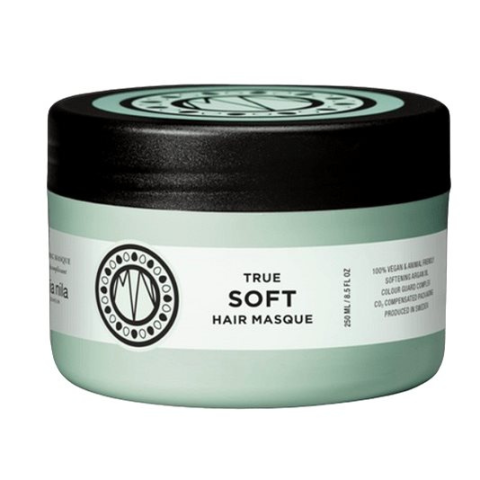 Hajmaszk - nőknek, parabénmentes, szilikonmentes és szulfátmentes, kiöblítendő, 250 ml űrtartalom, hatása hajhullás elleni, hidratáló és tápláló A MARIA NILA True Soft hajmaszk intenzív hidratálást és táplálást nyújt a haj számára. Összetétele argánolajjal gazdagított, amely megakadályozza a hajszálak töredezését, és intenzív fényt, erőt, vala