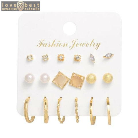 MariaKing 9 pár fülbevaló szett, arany színű fülbevaló 1 kép